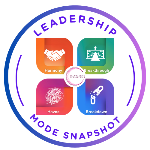 Together, these dimensions map into one of four Leadership Modes: Harmony, Havoc, Breakdown, or Breakthrough. Each Mode reflects how your team is most likely experiencing your leadership right now.